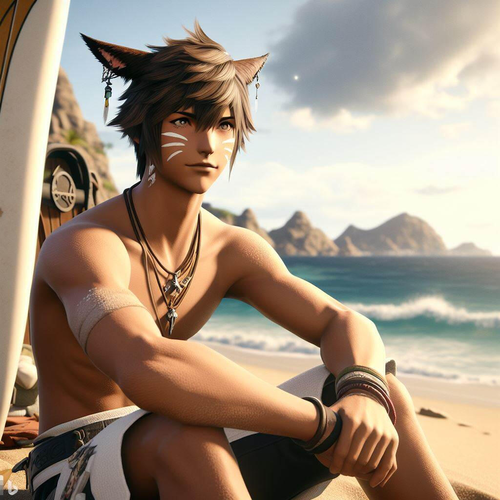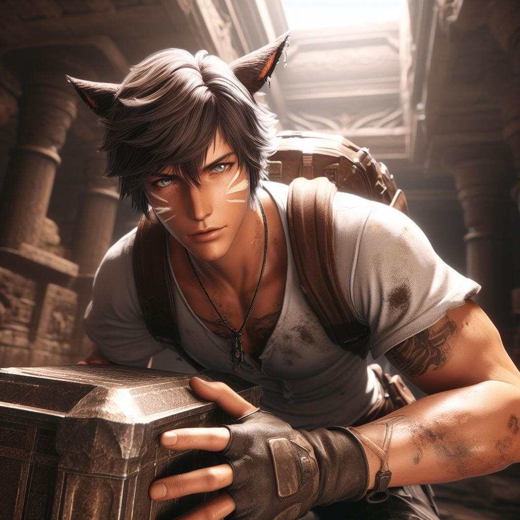 Now in his mid-twenties, he is a treasure hunter, archaeologist, explorer, and deep sea salvager. He lives in a log-cabin on a campsite just outside central Kugane city, near the mountains and forests. Whenever possibilities arise, Kai'to uses his beloved motorcycle to venture into Kugane city to visit old friends, engage in mixed martial arts at the local dojo, or take a break from his many explorations and relax at his favorite hangout, Costa Del Sol, to do what he loves the most, surfing. He is quite the free spirit who loves adrenaline, risk-taking, and adventure, always looking for what nature has to offer him and what places have yet to reveal their secrets. Even when the world is finding itself in the midst of peril and darkness, Kai'to keeps his optimistic outlooks and strives to make a positive difference.Kai'to's lifestyle is that of an adventurer; he's always looking for the next big thrill. Every weekend he's off on a new escapade, to a far off land, of a hidden treasure, or perhaps an uncharted sea. Whatever his destination, Kai'to always approaches it with a zest for life and a love for the unknown, a wanderer of the world, exploring wherever life takes him. He's an ambitious thinker, a person with an eye for the extraordinary, and a man of many talents. His passion for life and the journey it often takes him on, has shaped him to become who he is today; an accomplished treasure hunter, deep sea salvager, archaeologist, explorer and most of all, a very brave and daring soul.